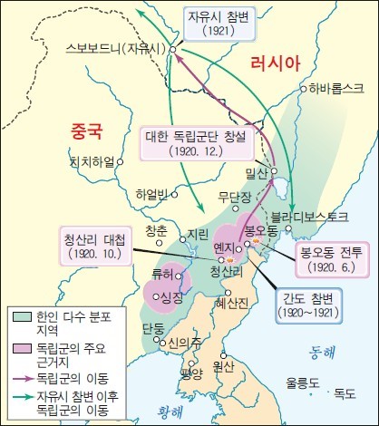 일본군은 봉오동 전투에서의 대패에 대한 보복으로 간도를 침략하였는데, 이 보복을 정당화하기 위해 마적단을 매수하여 훈춘사건을 조작하고, 간도에 군대를 투입했지만, 청산리전투에서 김좌진 장군의 북로군정서 독립군에 대패하고 만다. 이후 일본군은 양민학살의 형태로 보복작전을 벌이면서, 간도의 동포들뿐만 아니라, 노령 연해주에 살고 있던 동포들도 많은 피해를 당했다.