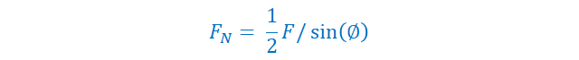 Normal force exerted by a wedge equals half the input force divided by the sine of the wedge’s angle. For a double-bevel knife, phi is degrees per side and so two normal forces will be exerted, one from each face of the knife.